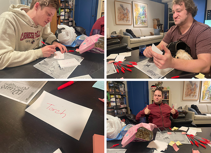 Chaotic Duels: Challenge your rivals! The core mechanic is a rock paper scissors duel to the death with seven spell options. Chant "For the right to fight the blight!" and reveal your Spell.
